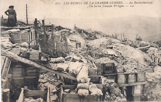 Almost opposite, the village of Breitenbach is at the foot of one of those places whose names reverberate dreadfully down the decades from the Great War: Reichackerkopf. In 1915, eight thousand French and German men died in attack–counter attack, loses-gains-losses, in snow and thaw and snow, for this strategically vital piece of landscape, which controlled the access up the two prongs of the valley.